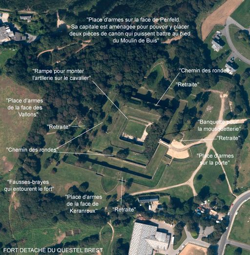 Plan de la redoute sur le fonds de la vue aérienne verticale, Brest Métropole Océane (photos n° 91_101, 91_102, 92_101, 92_102)Immatriculation