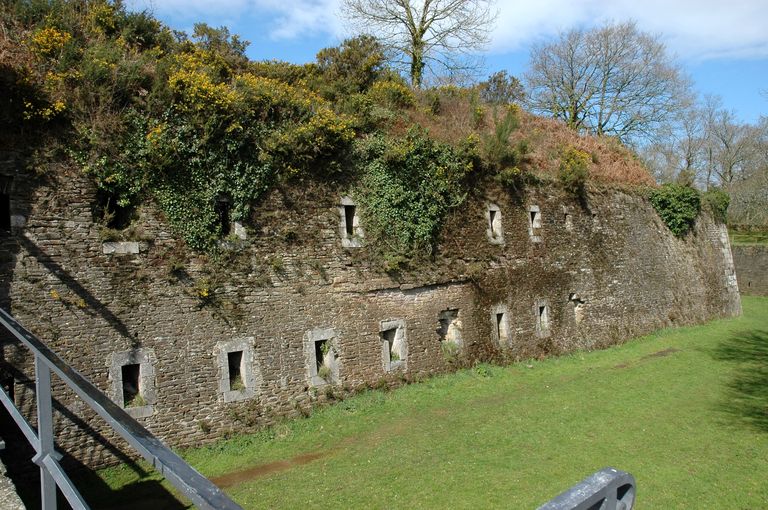 Vue du fort détaché du Questel : front de gorge percé de baies utilisables comme créneaux de mousquetterie (ouvertures des casernements)Immatriculation