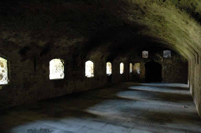 Vue du fort détaché du Questel : front de gorge sud, grande casemate inférieure dite grand souterrain, créneaux de mousquetterieImmatriculation