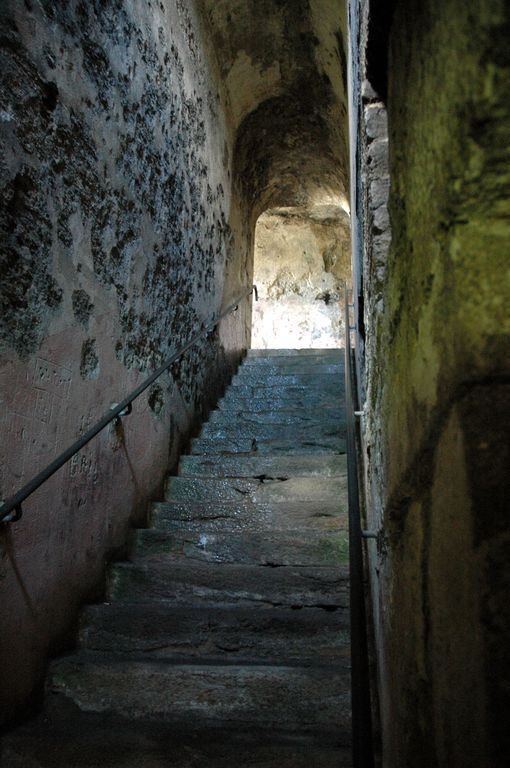 Vue du fort détaché du Questel : front de gorge sud, escalier d'accès à la grande casemate inférieure dite grand souterrain servant au logement des soldatsImmatriculation