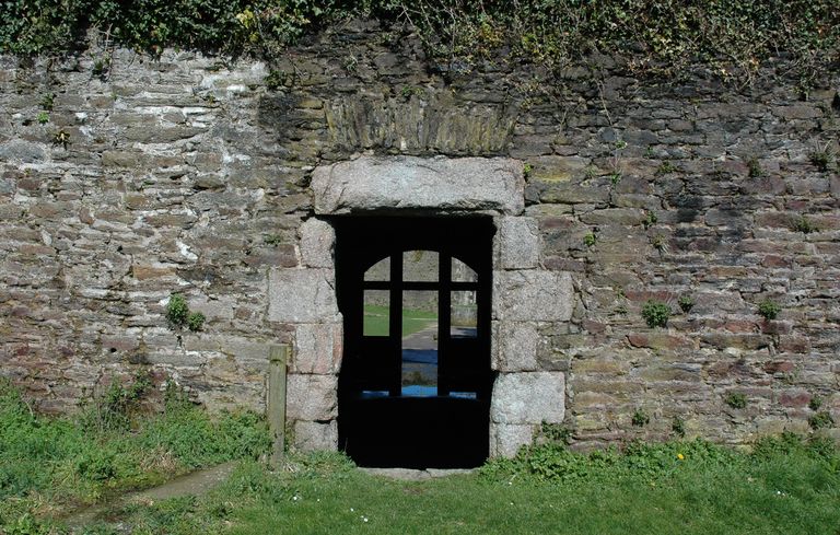 Vue du fort détaché du Questel : face de Keranroux, chemin de ronde, accès au magasin des vivres (la présence d'une cheminée indique la possibilité que la pièce soit prévue en cas de guerre comme logement)Immatriculation
