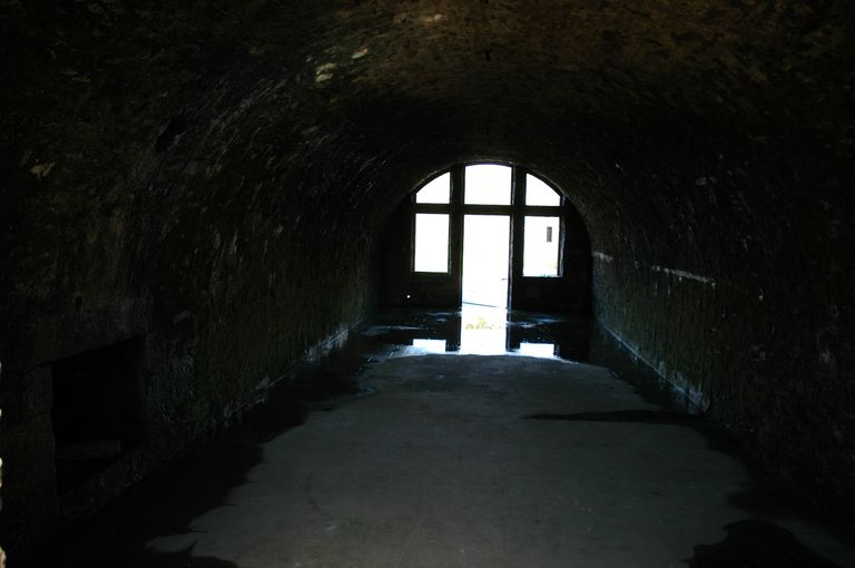 Vue du fort détaché du Questel : face de Keranroux, magasin des vivres voûté (la présence d'une cheminée indique la possibilité que la pièce soit prévue en cas de guerre comme logement)Immatriculation
