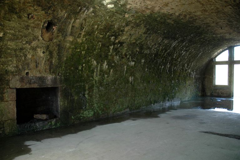 Vue du fort détaché du Questel : face de Keranroux, magasin des vivres voûté (la présence d'une cheminée indique la possibilité que la pièce soit prévue en cas de guerre comme logement)Immatriculation