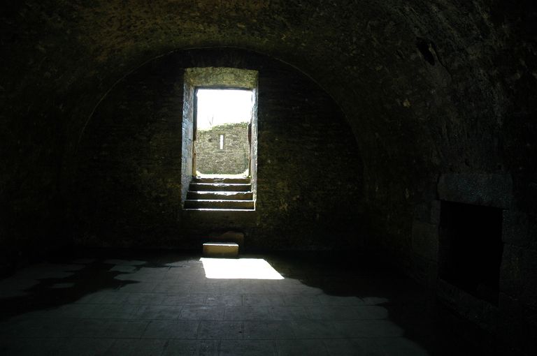 Vue du fort détaché du Questel : face de Keranroux, magasin des vivres (la présence d'une cheminée indique la possibilité que la pièce soit prévue en cas de guerre comme logement)Immatriculation