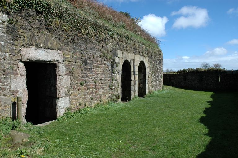 Vue du fort détaché du Questel : face de Keranroux, chemin de ronde, accès au magasin des vivres, à la plate-forme d'artillerie et au couloir desservant les casernements (à droite)Immatriculation