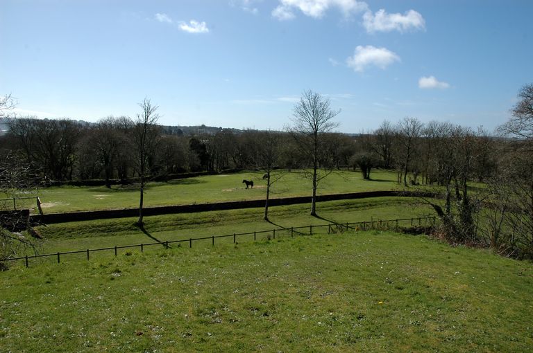 Vue du fort détaché du Questel : chemin couvert de la face de Keranroux depuis le parapet de la plate-forme d'artillerieImmatriculation