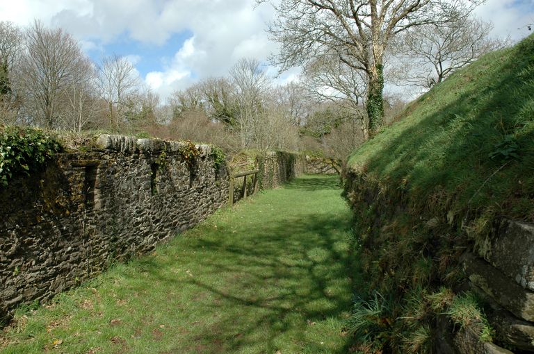 Vue du fort détaché du Questel : face des Vallons, chemin de ronde protégé par un mur défensif percé de créneaux de mousquetterieImmatriculation