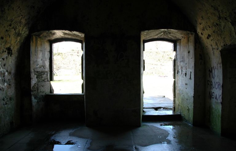 Vue du fort détaché du Questel : front de gorge sud, corps de garde des officiers (porte de communication avec le passage d'entrée)Immatriculation