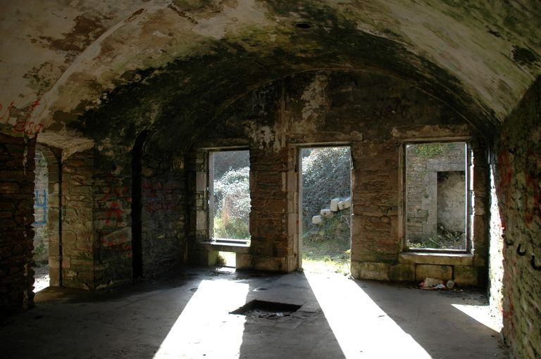 Vue du réduit de batterie de côte dit redoute intermédiaire des Blancs Sablons : casemate servant au logement des soldats (en temps de paix : 6 soldats et un sous officier séparé par une cloison ; en temps de guerre : 8 soldats et un sous officier)Immatriculation