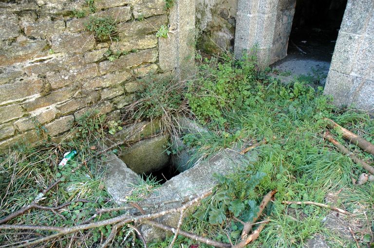 Vue du réduit de batterie de côte dit redoute intermédiaire des Blancs Sablons : trappe d'accès au niveau inférieur (fosses des latrines ; citerne et son filtre)Immatriculation