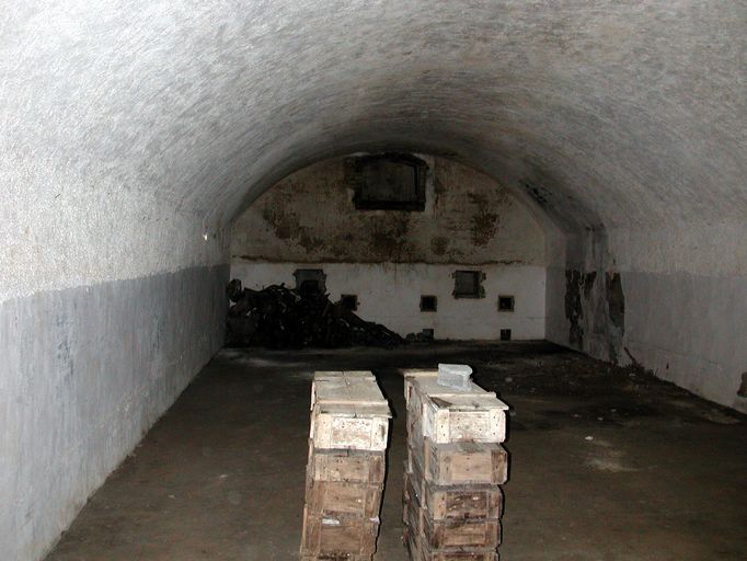 Brest, batterie extérieure du Portzic : magasin à poudre modèle 1879, aire de stockage, caisses contenant des carottes de sondage géologiqueImmatriculation