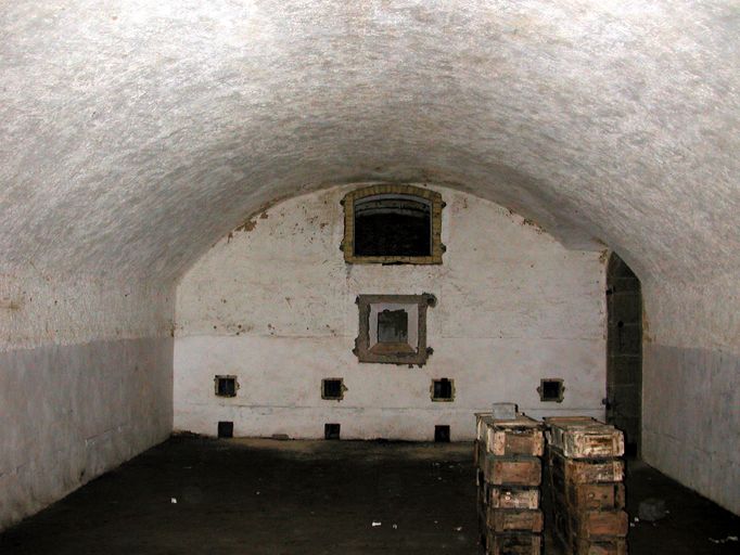 Brest, batterie extérieure du Portzic : magasin à poudre modèle 1879, aire de stockage, caisses contenant des carottes de sondage géologiqueImmatriculation