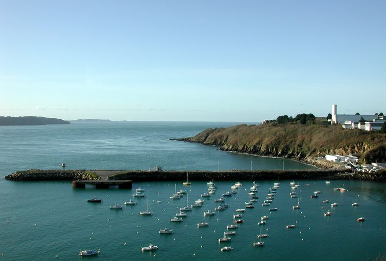 Vue de l'anse de Sainte-Anne du Portzic. En arrière-plan, le goulet de BrestImmatriculation
