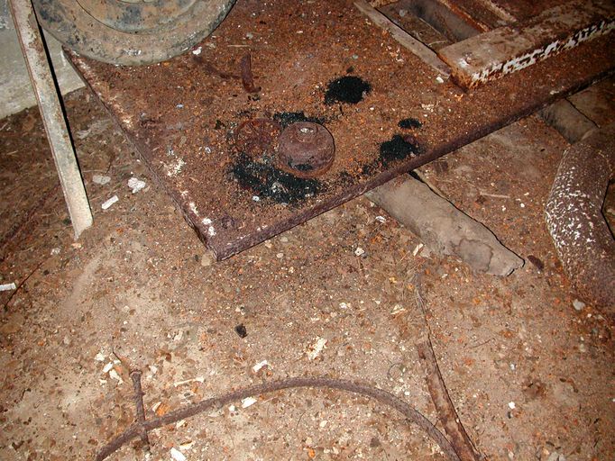 Vue de la chambre de troupe de gauche : cartouche de masque à gaz (état en 2003)Immatriculation