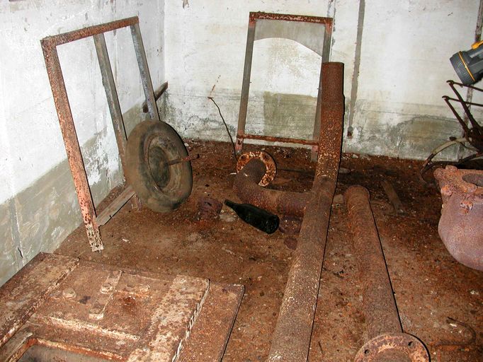 Vue de la chambre de troupe de gauche : tuyaux de ventilation (état en 2003)Immatriculation