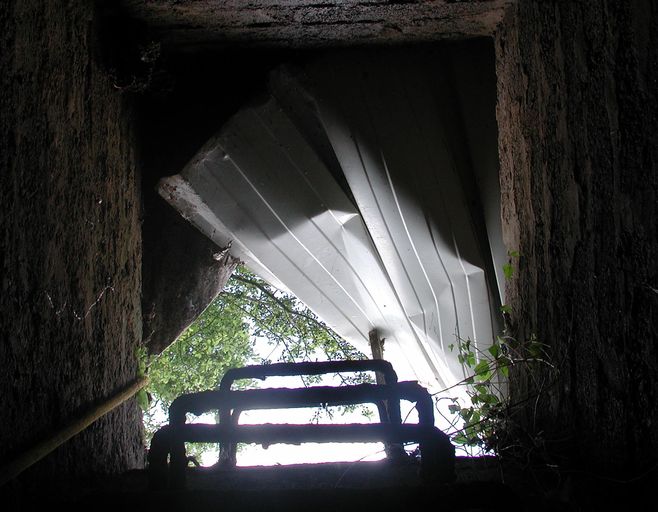 Vue de la sortie de secours du bunker avec ses échelons (seul accès au bunker en 2003)Immatriculation