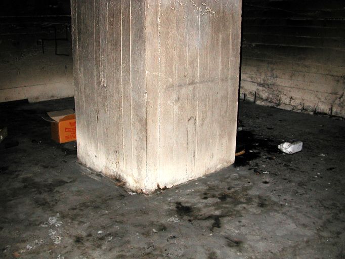 Vue de l'abri passif souterrain de Saint-Martin : pilier central en béton arméImmatriculation