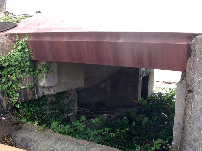 Vue du bunker de type 626 pour canon de 7,5 cm antichars (Pak 40) du parc à carburant de Maison Blanche : détail du toit blindéImmatriculation