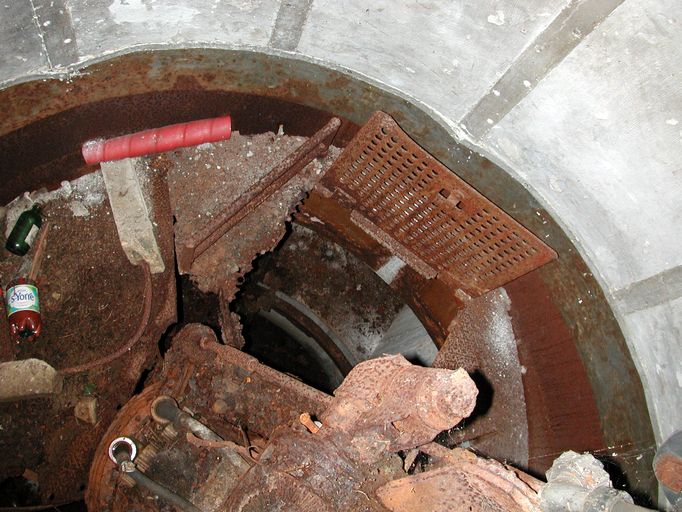 Vue du bunker de type 633 pour mortier (M19) du parc à carburant de Maison Blanche : palier de la cloche blindéeImmatriculation
