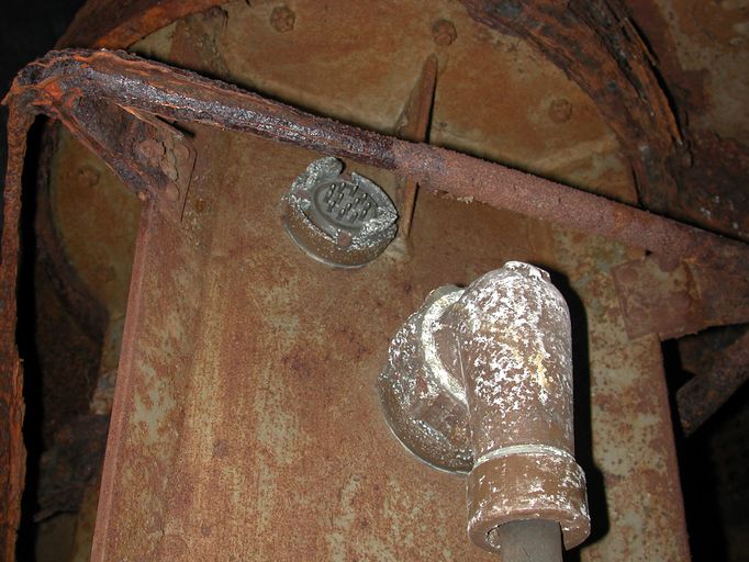 Vue du bunker de type 633 pour mortier (M19) du parc à carburant de Maison Blanche : cloche blindée, prisesImmatriculation
