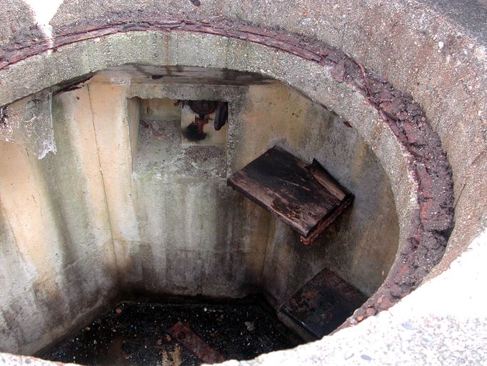 Vue de l'un des postes d'observation et de mitrailleuse dit Tobrouk du parc à carburant de Maison Blanche : détail de l'intérieurImmatriculation