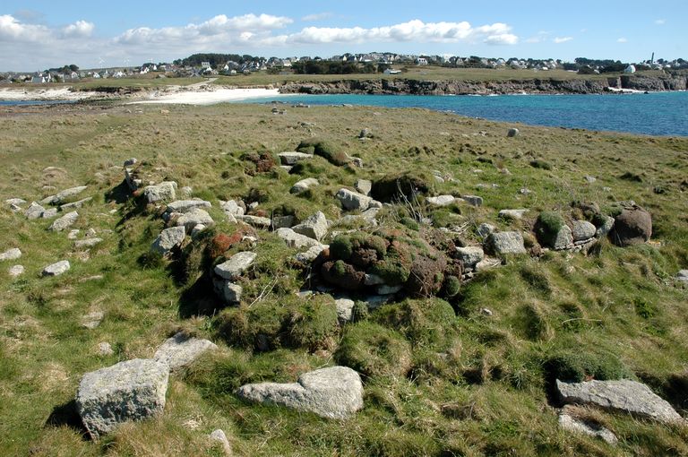 Vue de la carrière de granite de l'île Segal : vestiges d'un édifice de plan rectangulaire régulierImmatriculation