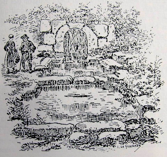 La fontaine avant 1930. Dessin Louis Le Guennec.Immatriculation