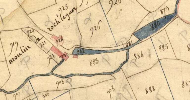 Moulin de Roc'h Cleguer. Extrait du cadastre de 1812, section D 3 (A.D. Finistère, 3 P 279)Immatriculation