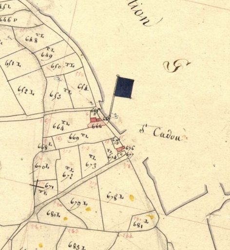 Partie ouest du village. Extrait du cadastre de 1812, section H 2 (A.D. Finistère, 3 P 279)Immatriculation