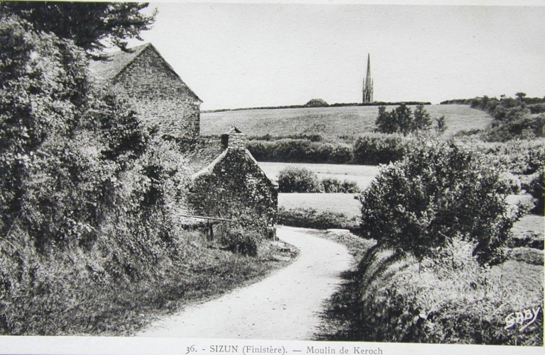 Le moulin de Kerroc'h dans les années 1960. Carte postale (coll. part.)Immatriculation