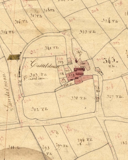 L'enceinte de Castel Don. Extrait du cadastre de 1812, section J 1 (A.D. Finistère, 3 P 279)Immatriculation