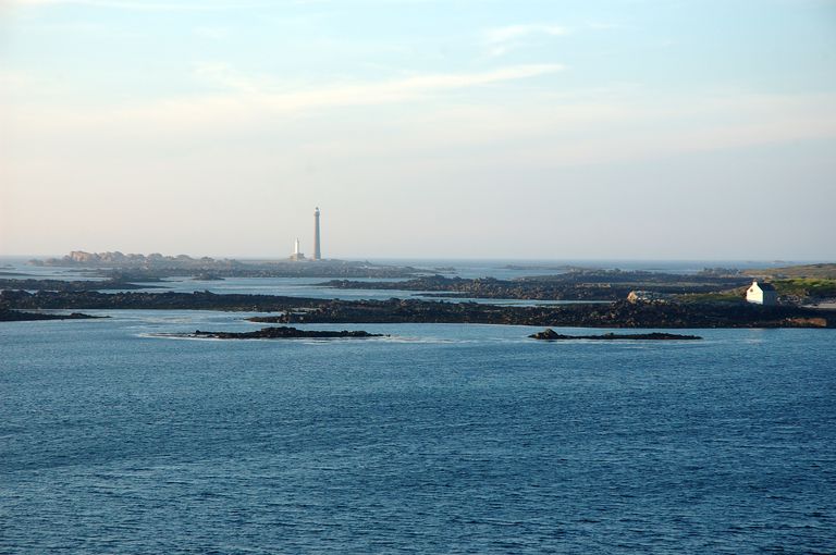 Vue du phare de l'île Vierge depuis la terrasse de la tour d'artillerie du fort CézonImmatriculation