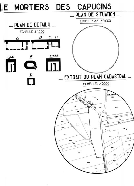 Plan cadastral et plan de détail des ouvrages (A-H) de la batterie de mortiers de la pointe des CapucinsImmatriculation