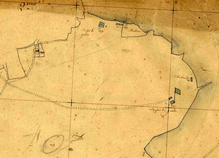 Plan de l'ensemble fortifié de la pointe de Morgat, Beg Ar Gador ou pointe du Kador, extrait du cadastre ancien de la commune de Crozon, 1831, Archives Départementales du FinistèreImmatriculation