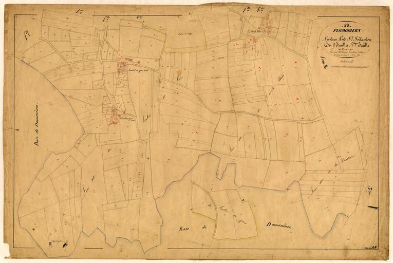 Plan de situation de la batterie de Plomodiern dit Saint-Sébastien, 1851, cadastre ancien de la commune de Plomodiern (Archives Départementales, Finistère, 3P234_003)Immatriculation