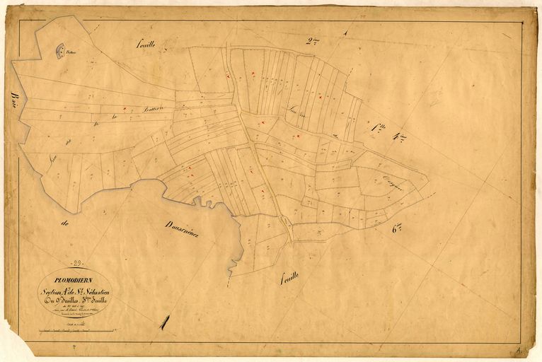 Plan de situation de la batterie de Plomodiern dit Saint-Sébastien, 1851, cadastre ancien de la commune de Plomodiern (Archives Départementales, Finistère, 3P234_004)Immatriculation