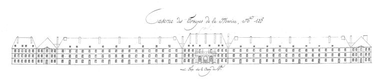 Elévations des établissements maritimes du port de Brest, année 1807. Caserne des troupes de la Marine, n° 135 (face sur le Champ de Bataille)Immatriculation