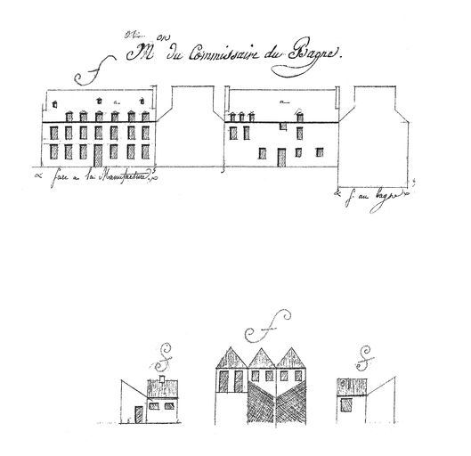 Elévations des établissements maritimes du port de Brest, année 1807. Maison du Commissaire du bagne (face à la manufacture, face au bagne)Immatriculation