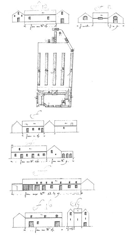Elévations des établissements maritimes du port de Brest, année 1807. Hôpital du Séminaire, plan d'ensemble, bâtiments n° 12 à 16Immatriculation