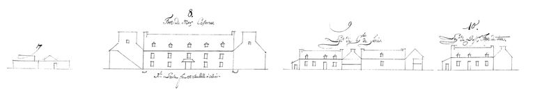 Développements des forts du camp retranché et des batteries de la côte du nord, année 1807. Façades des forts de terre et de mer au Portzic. Bâtiments n° 7, 8 (casernes), 9 (logement du garde du Génie), 10 (logement de l'officier du fort de terre)Immatriculation