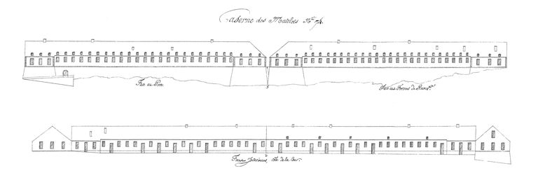 Suite des établissements maritimes, côté de Recouvrance, année 1807. Caserne des Matelots, n° 74 (face au port, face aux formes de Recouvrance, faces intérieures côté de la cour)Immatriculation
