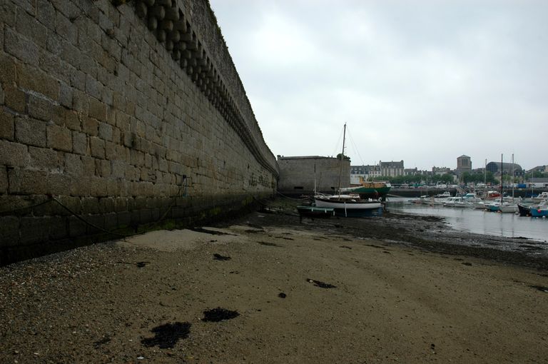 Vue de la ville-close de Concarneau : pied de la courtine située entre la tour de la Porte au Vin et la tour NeuveImmatriculation