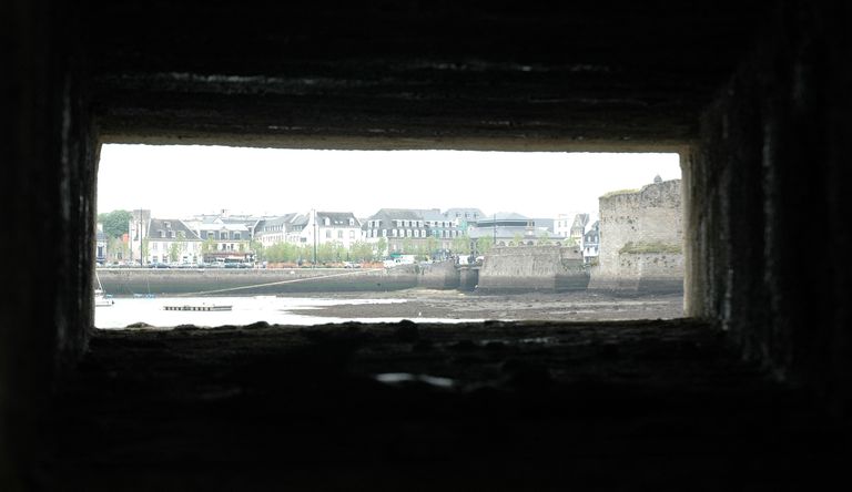 Vue de la ville-close de Concarneau : panorama vers le ravelin depuis une des canonnières de l'ouvrage dit le Fer à ChevalImmatriculation