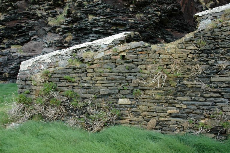 Vue de la batterie de Cornouaille : mur de soutènement des grands escaliers aménagés le long de la falaise (fin 17e siècle - début 18e siècle)Immatriculation