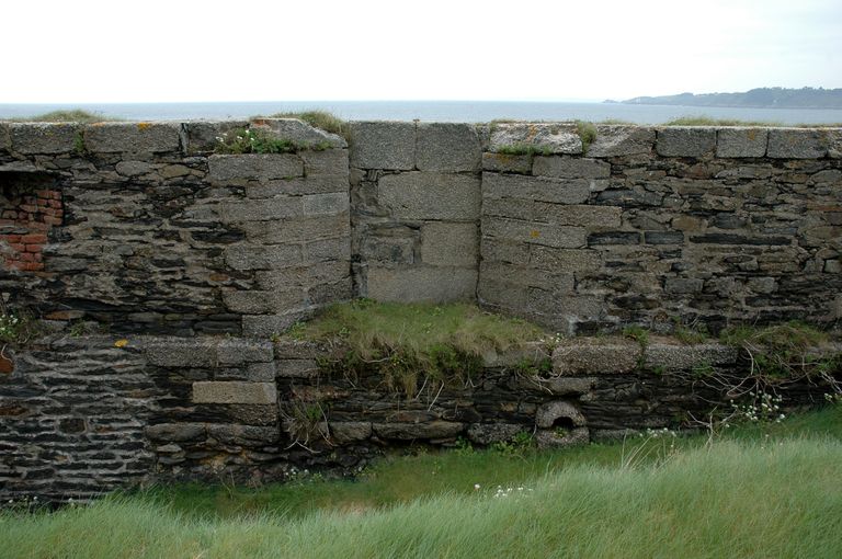 Vue de la batterie de Cornouaille : embrasure comblée pour permettre le tir à barbette (c'est à dire au dessus du parapet)Immatriculation