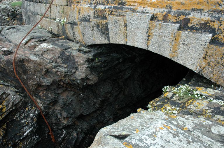 Vue de la batterie de Cornouaille : arc de soutènement du parapet au débouché de l'entaille de l'embrasure de gauche de la batterie de ruptureImmatriculation