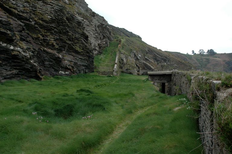 Vue de la batterie de Cornouaille : grands escaliers aménagés le long de la falaise et terre-plein de la batterie (fin 17e siècle - début 18e siècle)Immatriculation