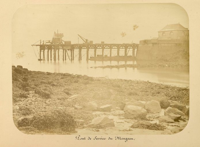 Vue du fort du Mengant en 1877 : chantier de construction du môle d'accostageImmatriculation