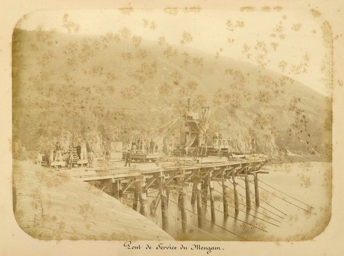 Vue du fort du Mengant en 1877 : chantier de construction du môle d'accostageImmatriculation