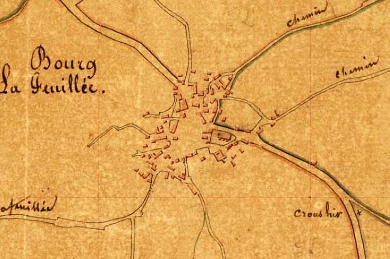 Le bourg en 1835. Extrait du tableau d'assemblage (A.D. Finistère, 3 P 124)Immatriculation